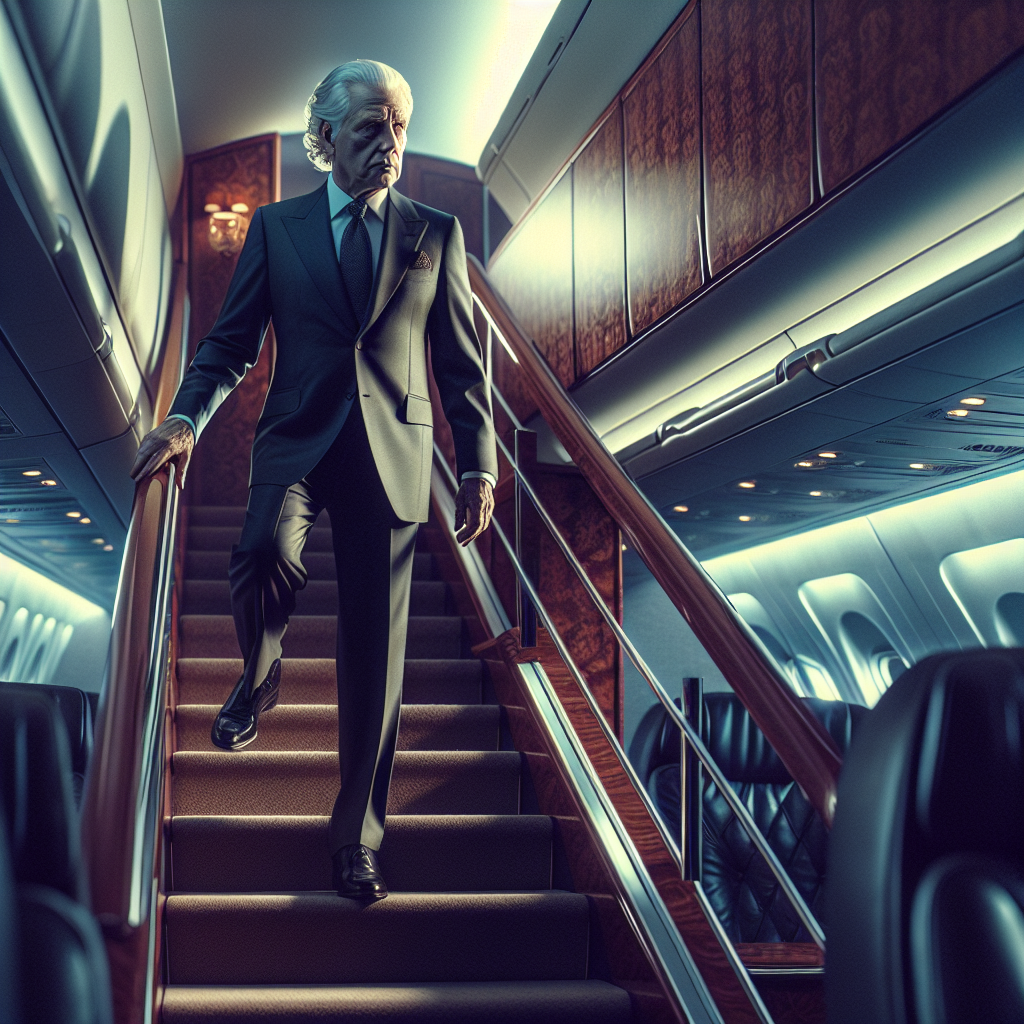 "Trump’s Careful Descent: Health Concerns Highlighted as Former President Navigates Air Force One Stairs"